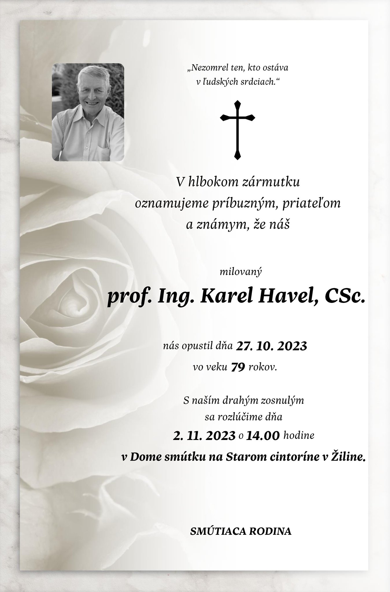 Prof. Ing. Karel Havel, CSc. patril k najvýznamnejším osobnostiam civilného letectva v Slovenskej republike. Počas svojho 46 ročného pôsobenia na Katedre leteckej dopravy na Fakulte prevádzky a ekonomiky dopravy a spojov Žilinskej univerzity v Žiline sa podieľal na vzdelávaní niekoľko stoviek odborníkov pre oblasť leteckej dopravy. Zaviedol výučbu predmetu Manažment letovej prevádzky a garantoval študijný program Profesionálny pilot. Spoluzakladal súčasné Letecké výcvikové a vzdelávacie centrum Žilinskej univerzity v Žiline a pôsobil ako letový inštruktor obchodných pilotov (nálet 5 400 hodín).